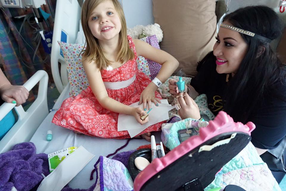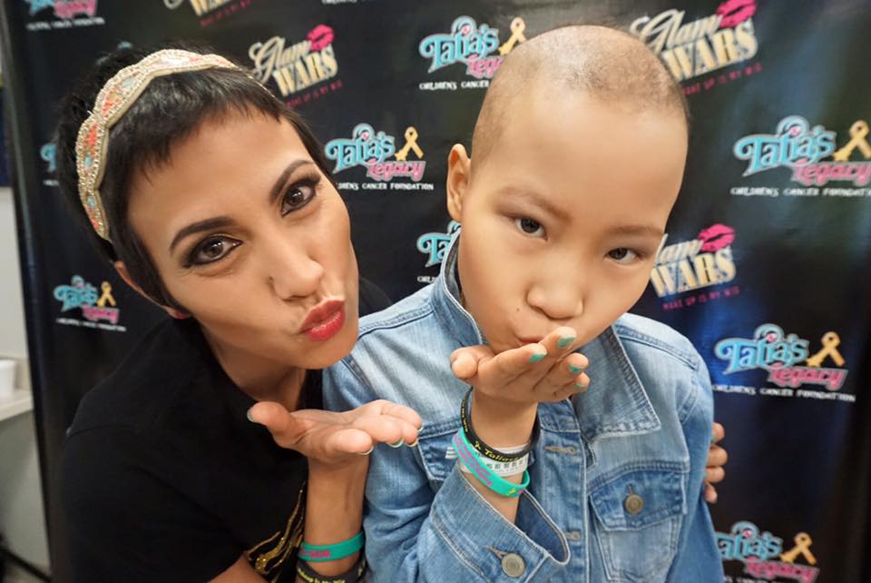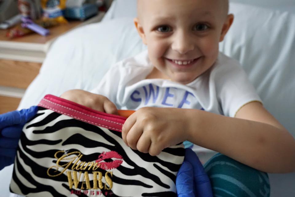 Unfortunately, Talia lost her hair while battling childhood cancer and makeup became her passion. Talia created the motto "Makeup Is My Wig". Talia wanted to help other children feel pretty and confident like she did, so she started Glam WARS. Glam WARS is now a program that teaches young girls how to apply makeup to help them feel empowered while fighting childhood cancer.